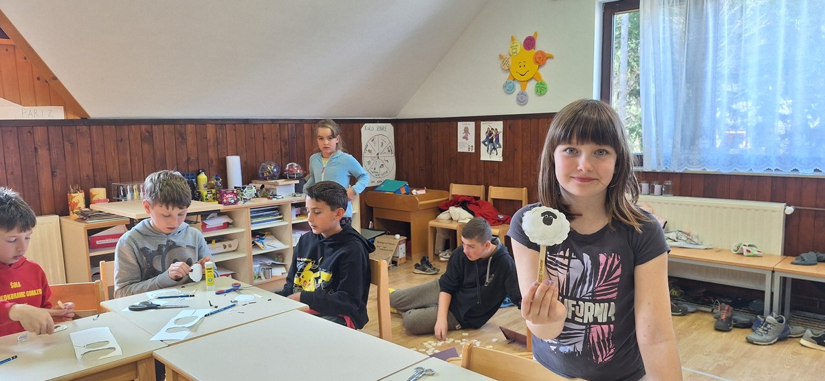 Petkovo dopoldne je bilo namenjeno pouku v mešanih skupinah. Učenci so zakrožili po štirih praktičnih delavnicah: plesni pod mentorstvom učiteljice Irene Rupar in ob harmoniki Saša Galeta, likovni pod vodstvom učiteljice Ane Kurnik, gibalni dejavnosti za krepitev socialnih veščin, ki jo je vodila učiteljica Tadeja Snedec ter planinski delavnici, ki jo je v Županovem kotu in planinski pisarni vodil Milan Šenk, izkušeni član PD in GRS Jezersko.